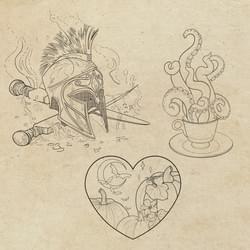 These designs are available to be tattooed by me. Most of these are one of a kind. Once they are tattooed, they won't be tattooed again. Repeatable flash is marked. If you see something that you would like, please screenshot it and put it as a reference when you fill out the contact form HERE